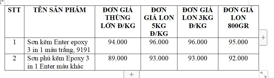 Bảng báo giá sơn kẽm Enter Lina mới nhất