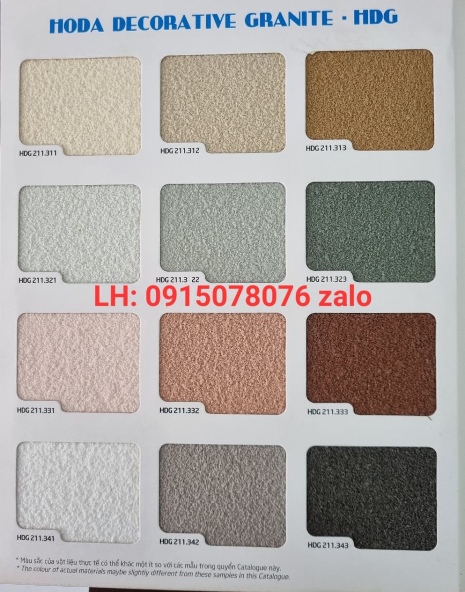 Sơn giả đá Hòa Bình không sản xuất sẵn. Đây là mặt hàng đặt theo mã màu cụ thể do mỗi công trình có yêu cầu thẩm mỹ riêng biệt.
