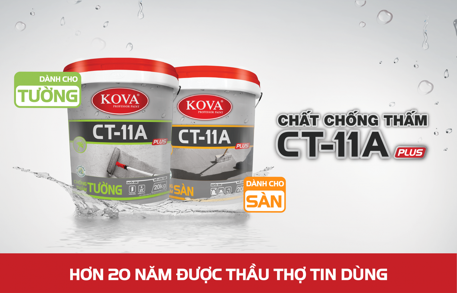– CT11-A Kova là dòng chống thâm pha xi măng có tính năng ngăn chặn sự thấm nước, thích hợp cho các tầng hầm, sân thượng, bể nước, bể bơi, sân thượng, nền nhà, tường, sê nô, sàn nhà vệ sinh, sàn nhà xưởng,….