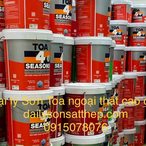 TOA 4 Seasons Satin Glo (18L, 5L): Dòng sơn ngoại thất trung cấp, mang lại bề mặt mịn, dễ lau chùi, phù hợp cho các công trình vừa và nhỏ.
