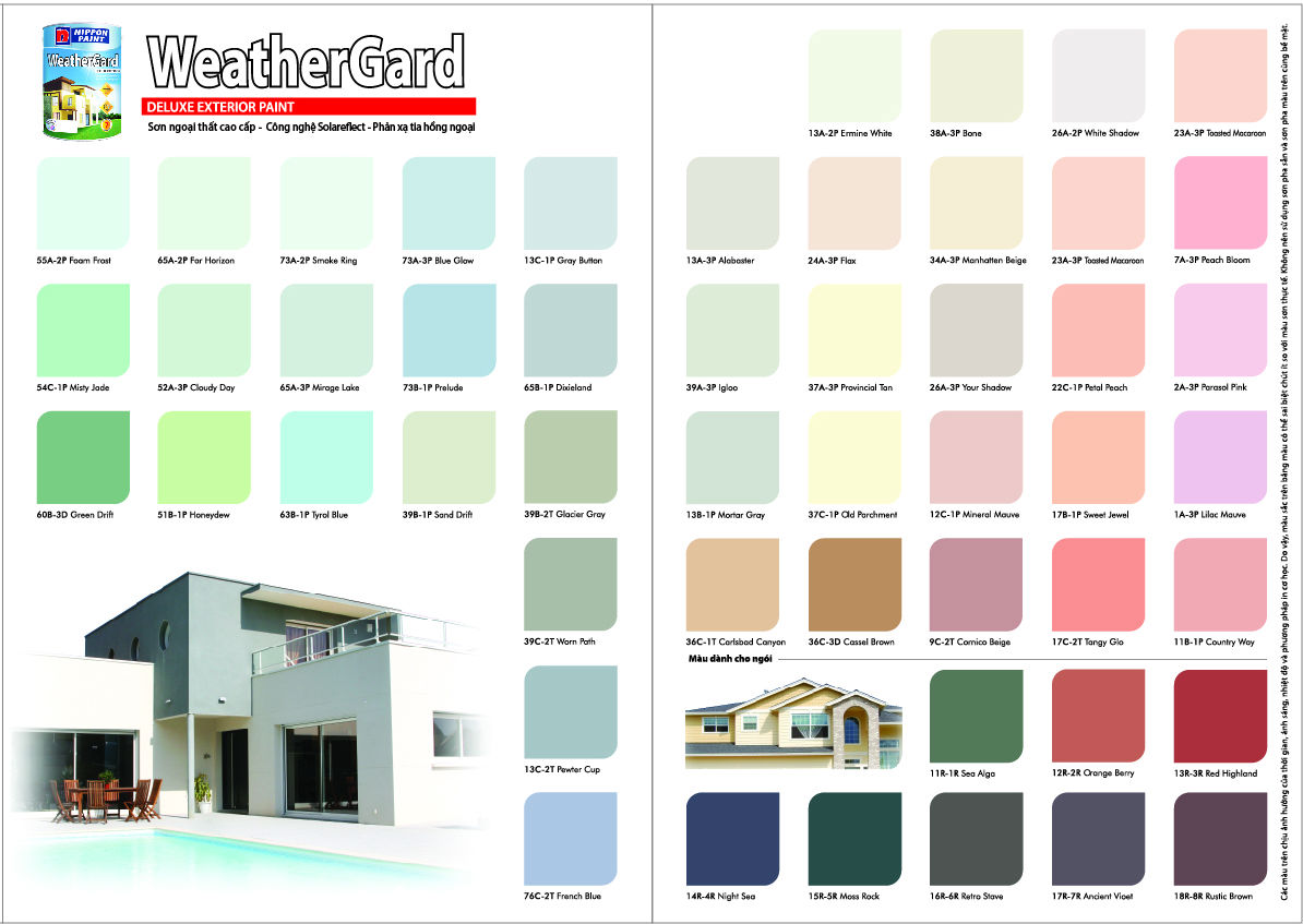 Sơn Nippon có bảng màu đa dạng, từ các tông màu trung tính, nhẹ nhàng đến những màu sắc nổi bật giúp bạn dễ dàng lựa chọn theo phong cách thiết kế. Màu sắc giữ được độ tươi sáng lâu dài, không bay màu, mang lại vẻ đẹp hoàn thiện cho mọi công trình.