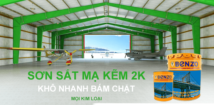 – Sơn 2K Benzo là loại sơn hai thành phần gồm có sơn lót 2K và phủ 2K dùng để sơn lên mọi bề mặt vật liệu kim loại đặc biệt là sắt mạ kẽm, trong điều kiên khắc nghiệt như: kết cấu thép nhà tiền chế, cầu tháp, máy móc, tàu thuyền, công trình bằng kẽm ở bên ngoài trời,…