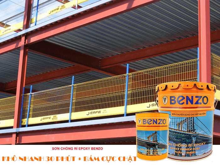 Sơn lót chống rỉ epoxy cho sắt thép Benzo : dùng làm lớp sơn lót chống rỉ đầu tiên cho bề mặt kim loại không mạ kẽm, như kết cấu thép , tàu thuyền, cầu tháp, ….để ở nhưng nơi chịu thời tiết khắc nghiệt, ngoài trời, hoặc cần được bảo vệ lâu dài.